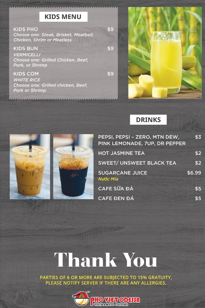 Pho Viet Odessa Menu
